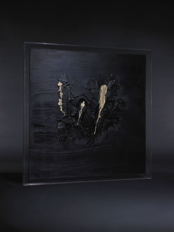 Seine Malereien zeigen die Schönheit des Rohstoffs Öl, indem sie diesen als „Material“ behandeln. Direkt und unmittelbar offenbart das „schwarze Gold“ seine Beschaffenheit in sich überlagernden Strukturen, Formationen und Schichtungen.